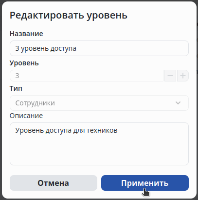 Редактирование уровня доступа