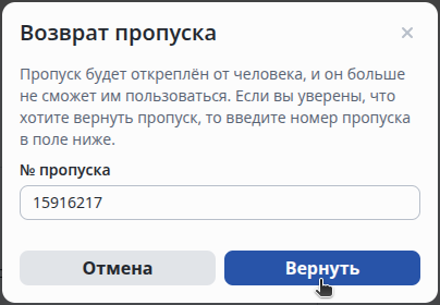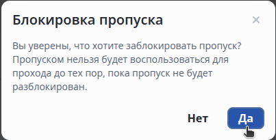 - Проход — предоставляет разовый проход согласно настройкам реле.