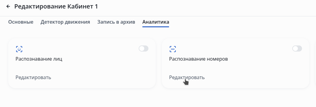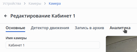 • Состояние аналитики — включение/выключение аналитики на камере;
