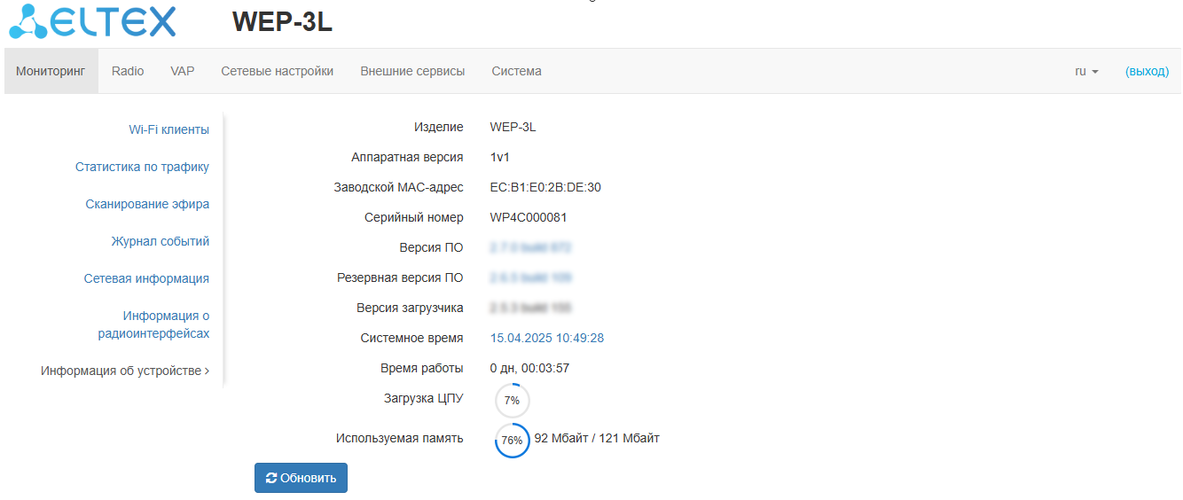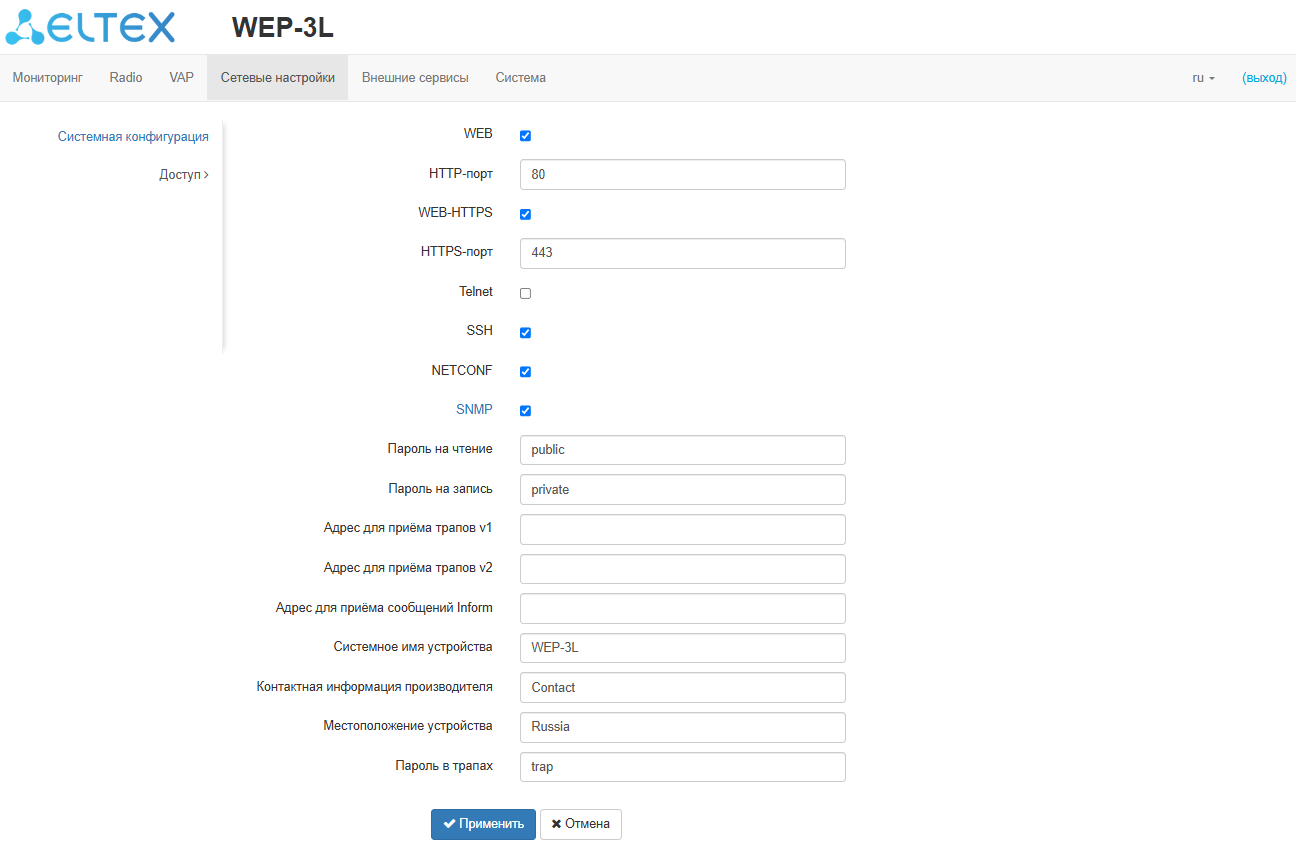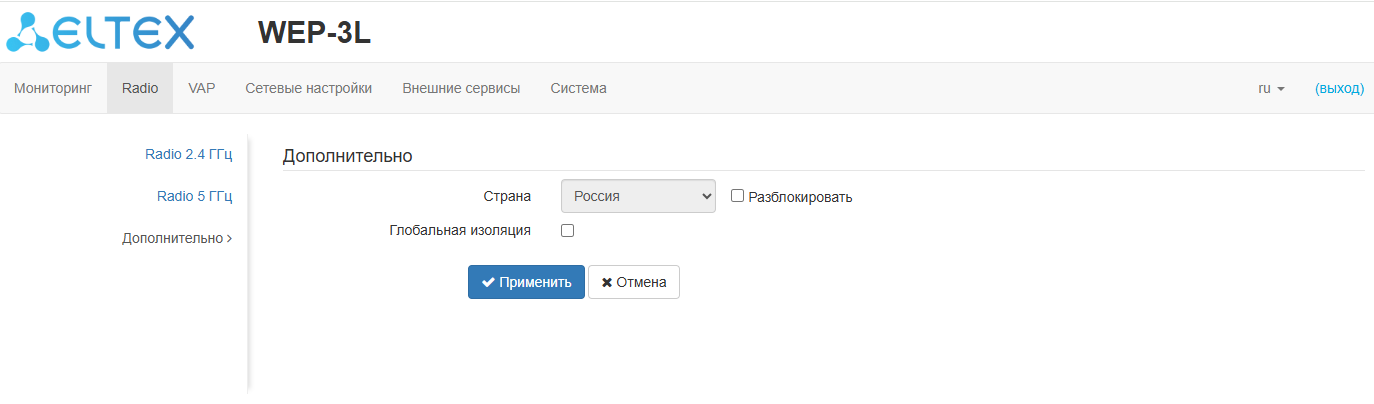 WEP-3L(config):/radar# enabled true (включение функционала radar. Для отключения введите false)