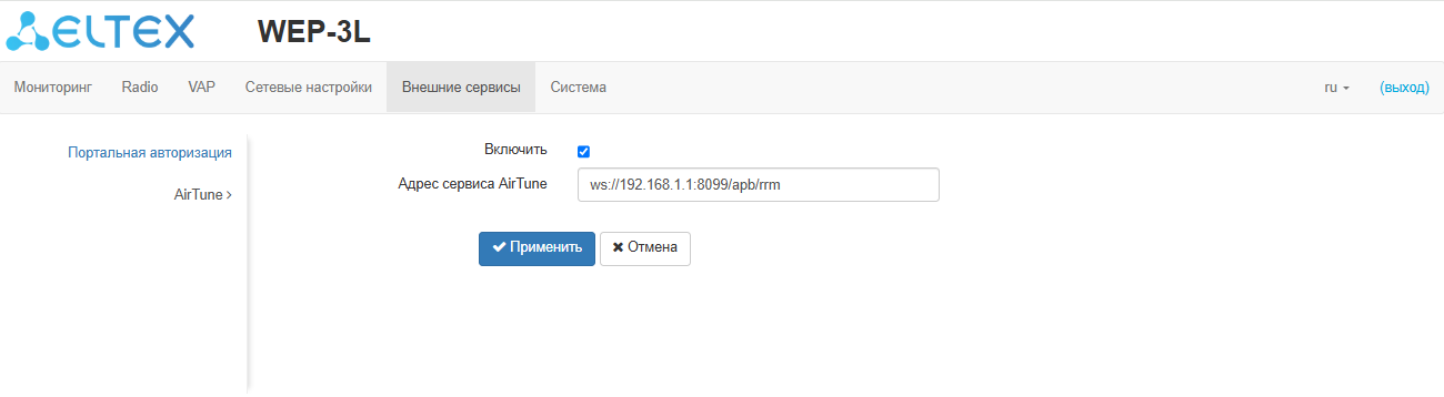 6.3.7 Настройка VAP с внешней портальной авторизацией