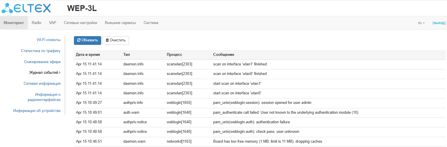Для удалённого захвата пакетов с радиоинтерфейсов необходимо поднять интерфейсы radio0 и/или radio1 из предыдущего пункта.