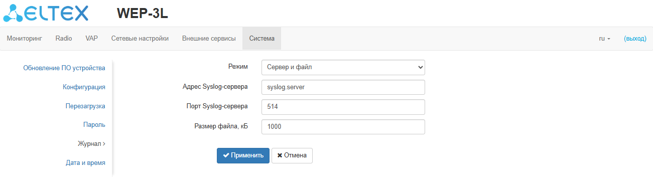 • поддержка Syslog;
