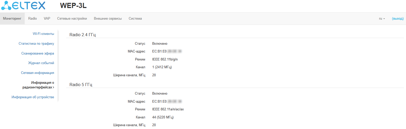 WEP-3L(config):/radar# scan-interface all (интерфейс, на котором будет работать сканирование. Возможные значения: wlan0  интерфейс 2.4 ГГц, wlan1 — интерфейс 5 ГГц, all — одновременно 2.4 ГГц и 5 ГГц)