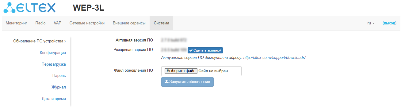 Версия программного обеспечения 2.7.0