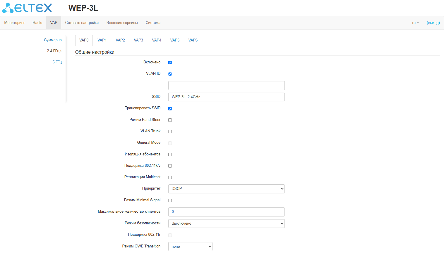 6.3 Настройка виртуальных точек доступа Wi-Fi (VAP)