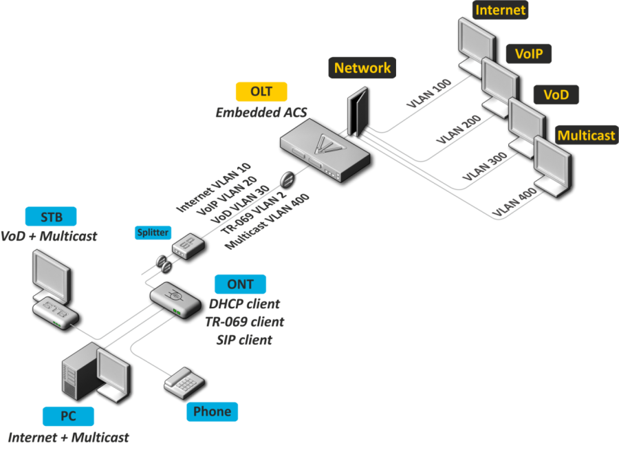 - Модель «VLAN на сервис». Абоненты одной услуги находятся в одной VLAN.