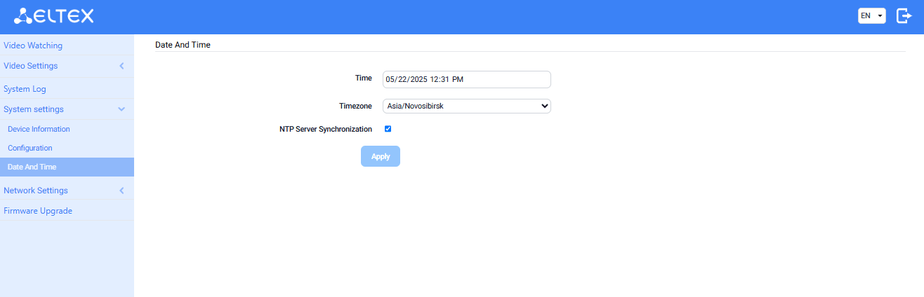 - NTP Server Synchronization — enable synchronization by NTP.