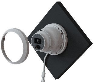 - Place the plastic ring over the camera, aligning the tabs with the slots on the camera housing. Twist the ring until it stops.