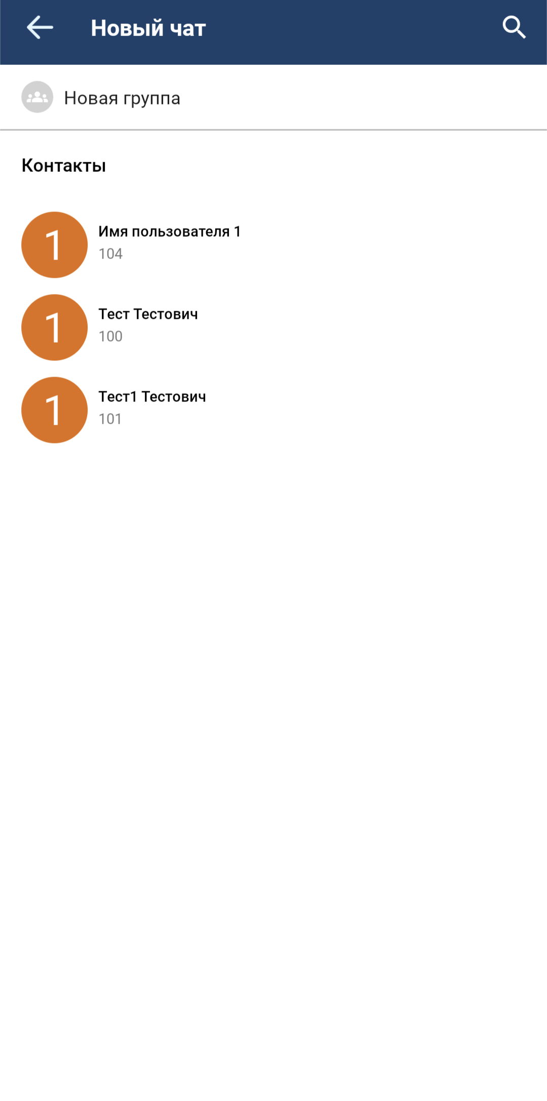 При нажатии на пользователя из списка он будет отмечен для добавления в групповой чат, а в верхней части интерфейса отобразится список всех отмеченных пользователей. При дальнейших нажатиях на других пользователей они будут отмечаться в списке и появляться в верхней части интерфейса в списке всех отмеченных. Для удаления отметки с пользователя можно повторно нажать на него в списке всех пользователей, либо нажать на него в списке отмеченных пользователей.