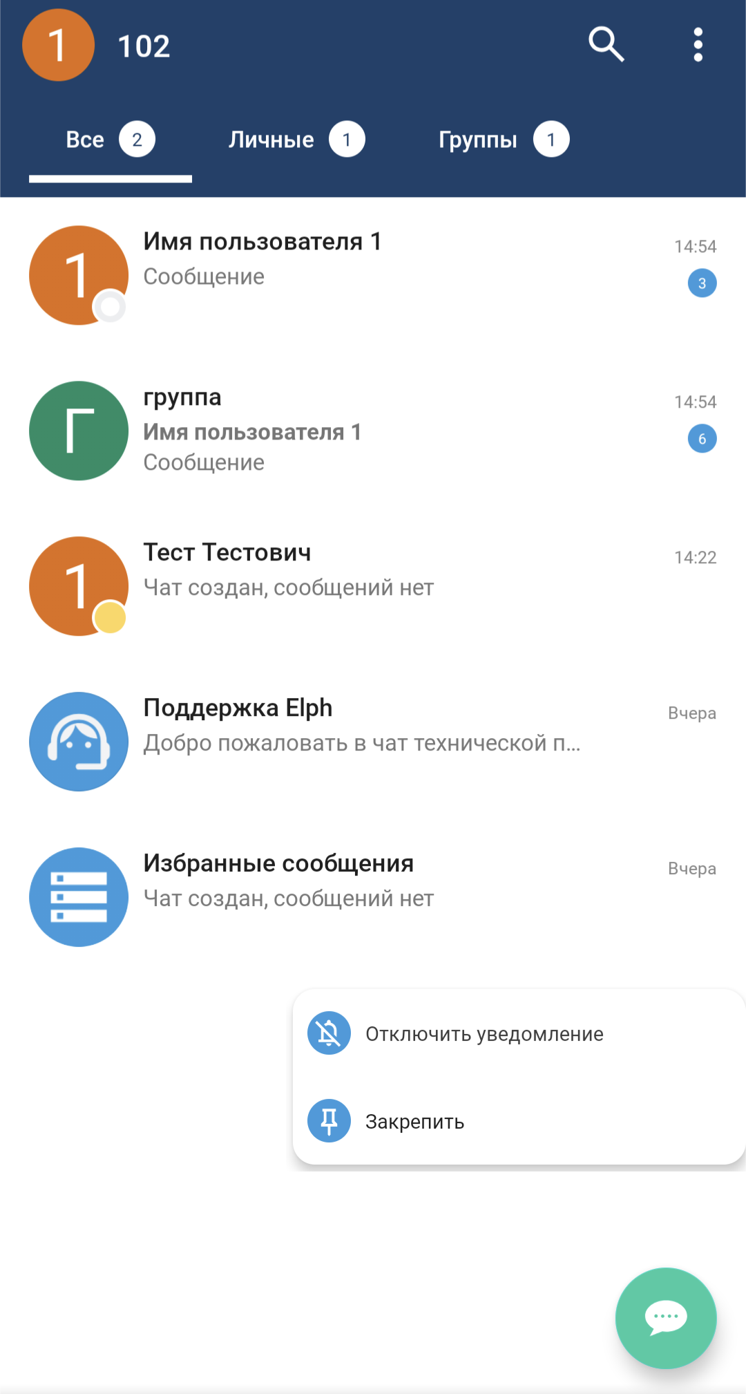 Для быстрой связи с администратором существует чат «Поддержка Elph». Этот чат находится среди всех остальных чатов в общем списке чатов, а также в выпадающем меню (см. раздел «Интерфейс главного экрана чатов»).