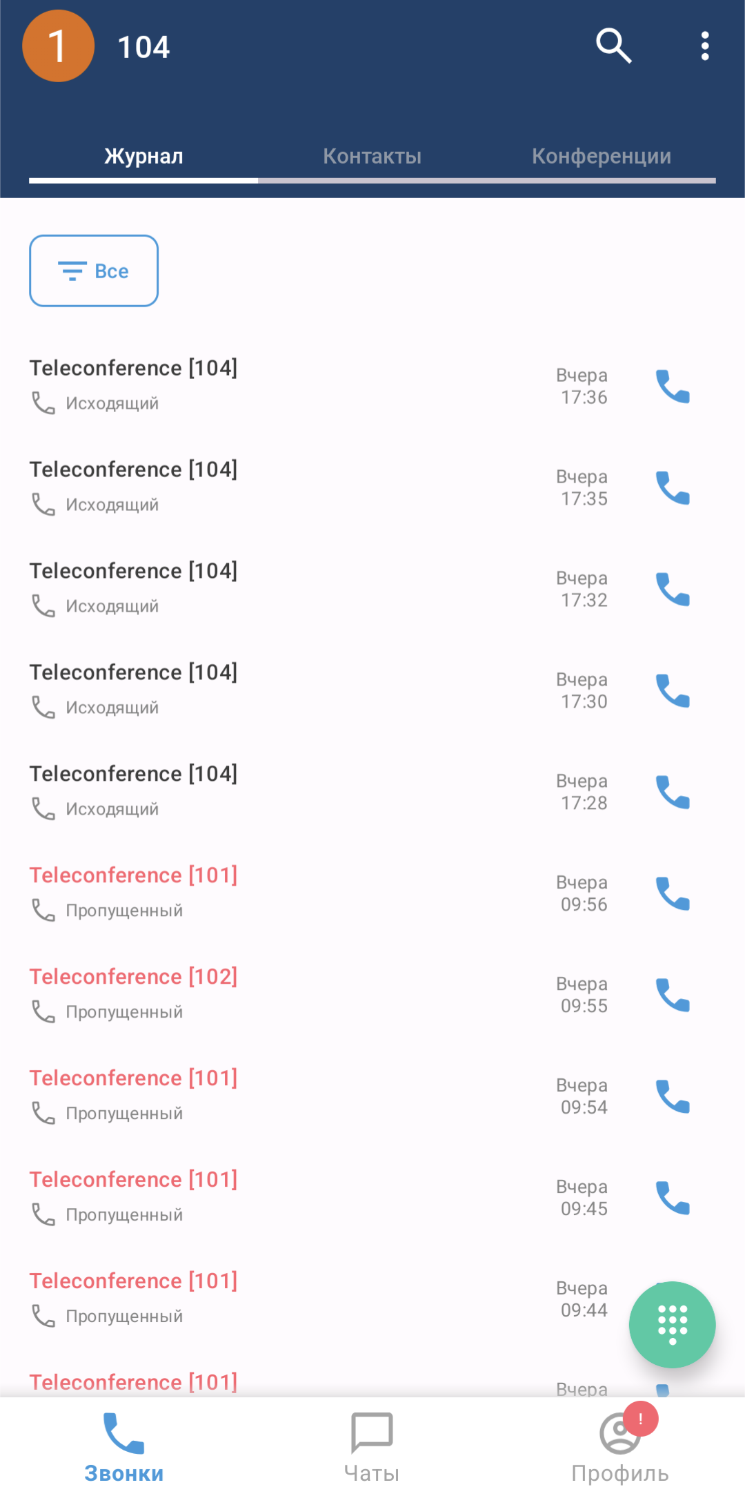 Во вкладке «Журнал» отображается история входящих и исходящих вызовов, совершенных пользователем, а также пропущенных вызовов. В том числе отображаются вызовы, совершенные на других устройствах.