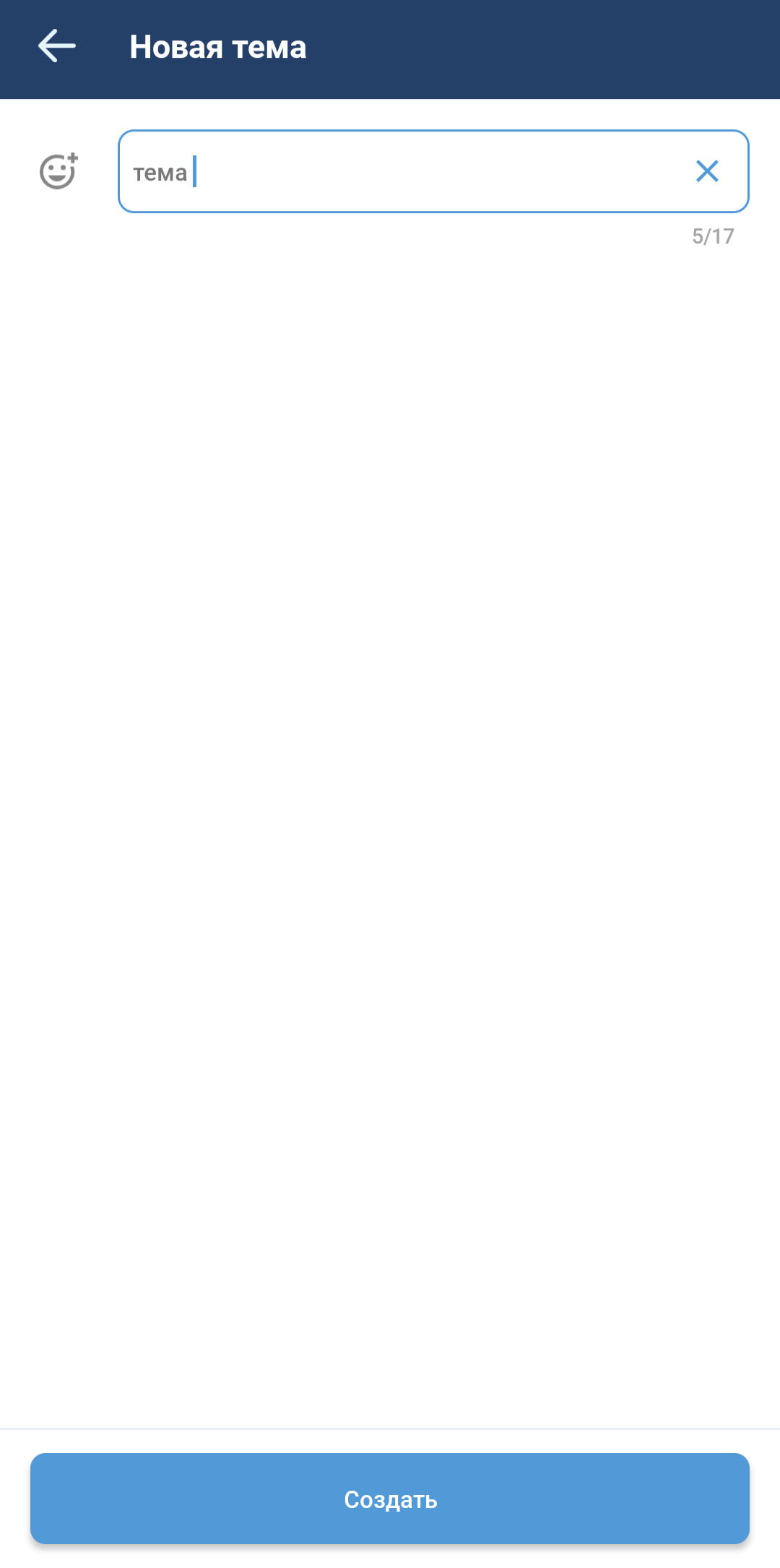 Для создания темы необходимо ввести её название, выбрать эмодзи-аватар и нажать Создать. Если эмодзи не выбрать, то будет установлен эмодзи-аватар по умолчанию.