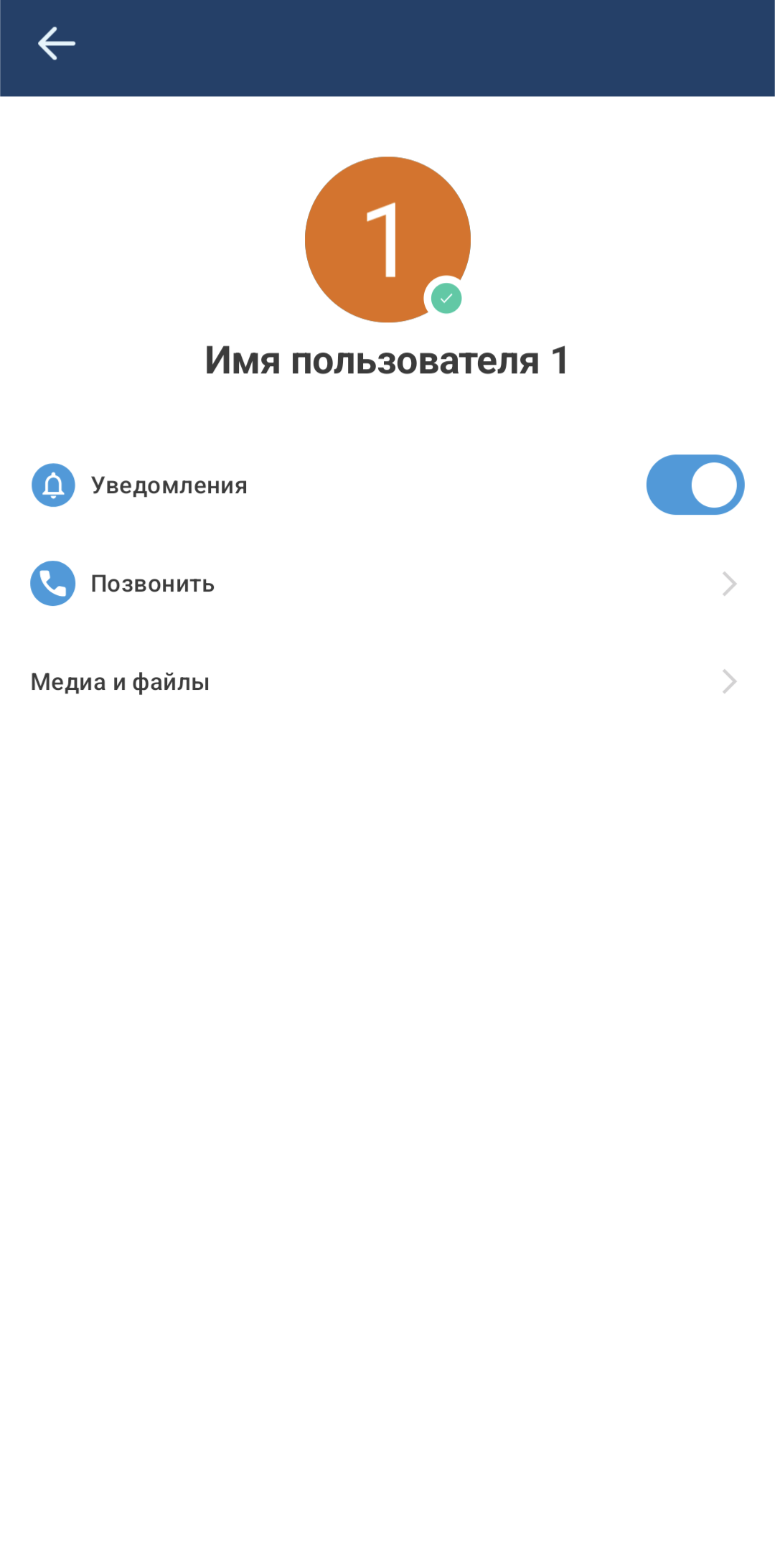Интерфейс информации о личном чате содержит: