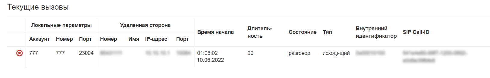 Состояние вызова — промежуточное состояние либо причина завершения вызова, описание становится доступным при наведении курсора на запись состояния вызова;