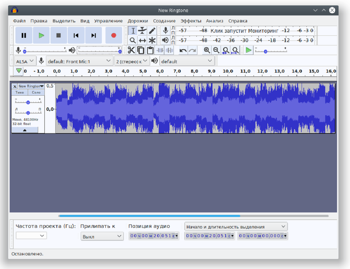 Подготовка файла мелодии вызова в аудиоредакторе «Audacity»