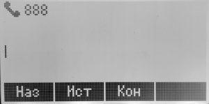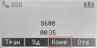 Если нажать клавишу <Конф> на экране конференции — откроется экран набора номера. Набрать номер или выбрать из телефонной книги (клавиша <Кон>) либо истории (клавиша <Ист>), совершить вызов (клавиша <Выз>). После ответа абонента нажать клавишу <Конф> — абонент добавлен в конференцию.