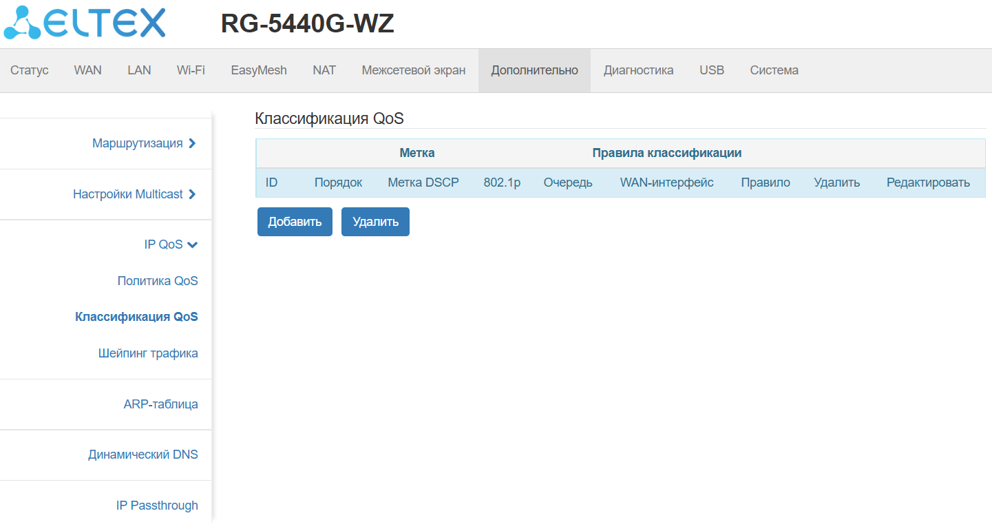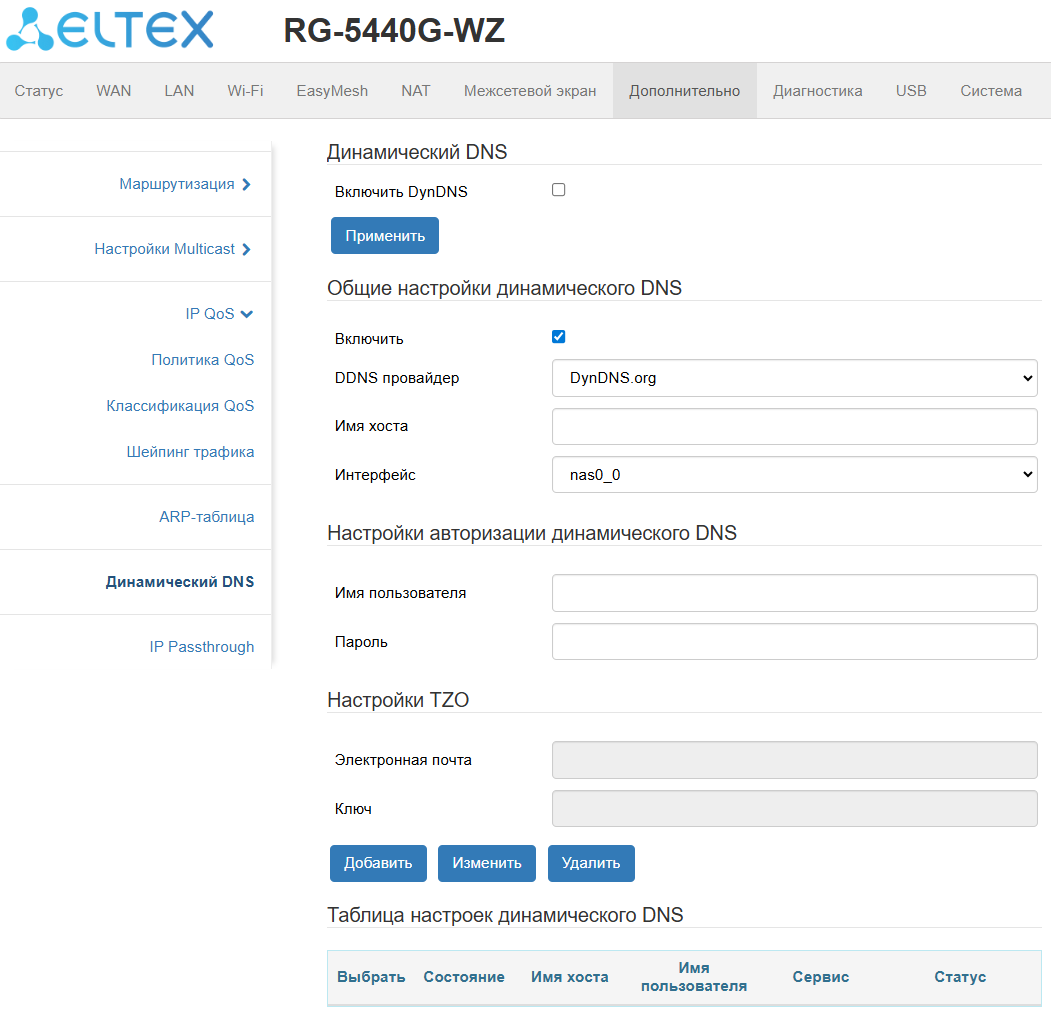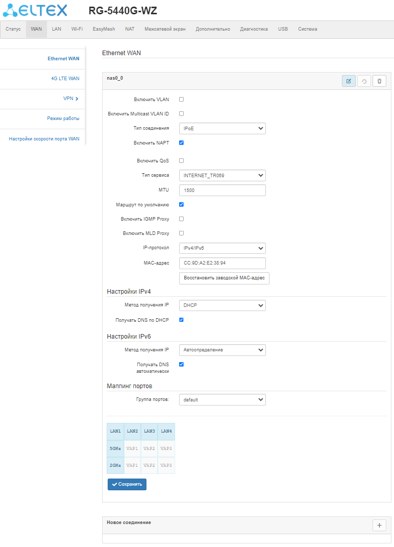поддержкаMultiWAN (мультисервисная модель: раздельная настройка сетевых параметров для каждого сервиса: Internet, TR-069, IPTV);