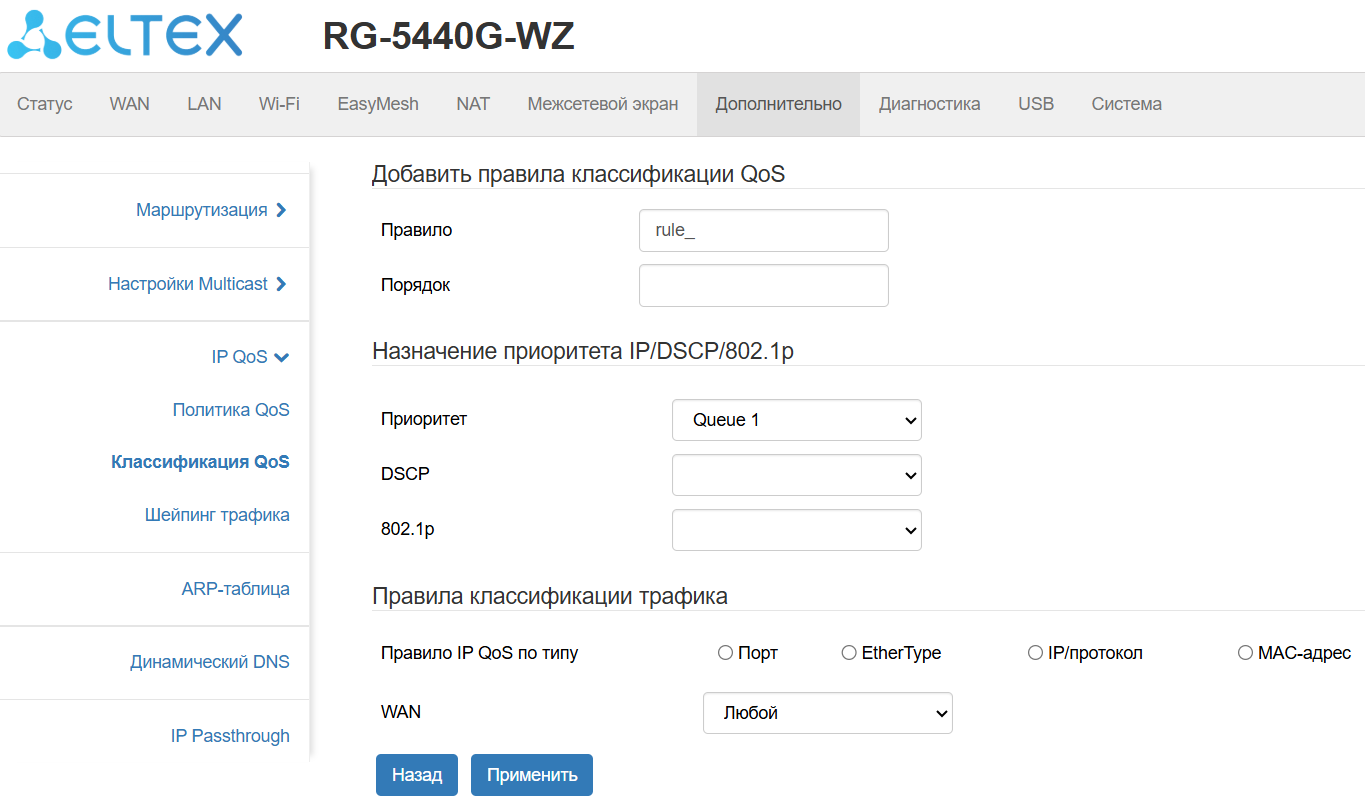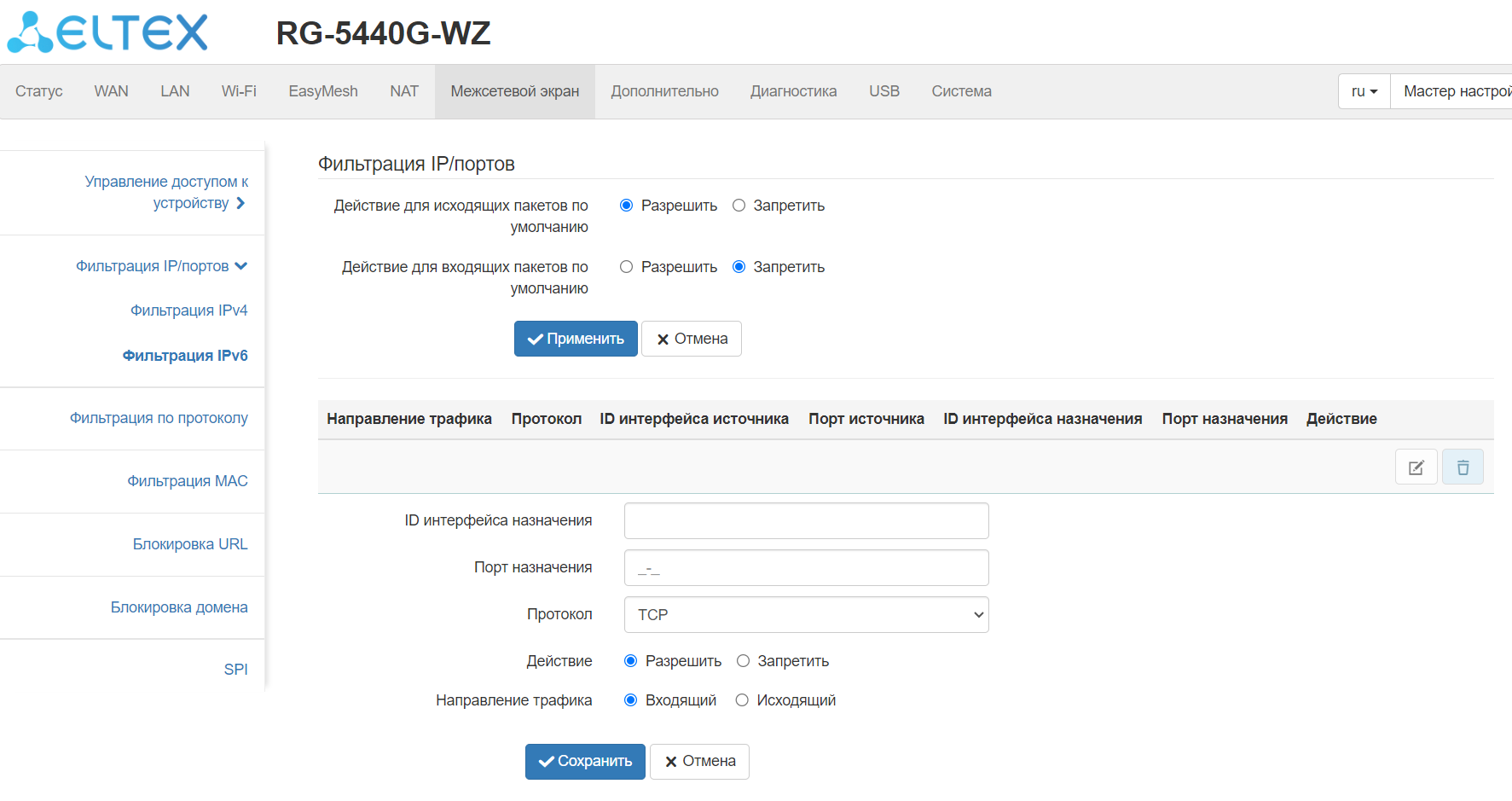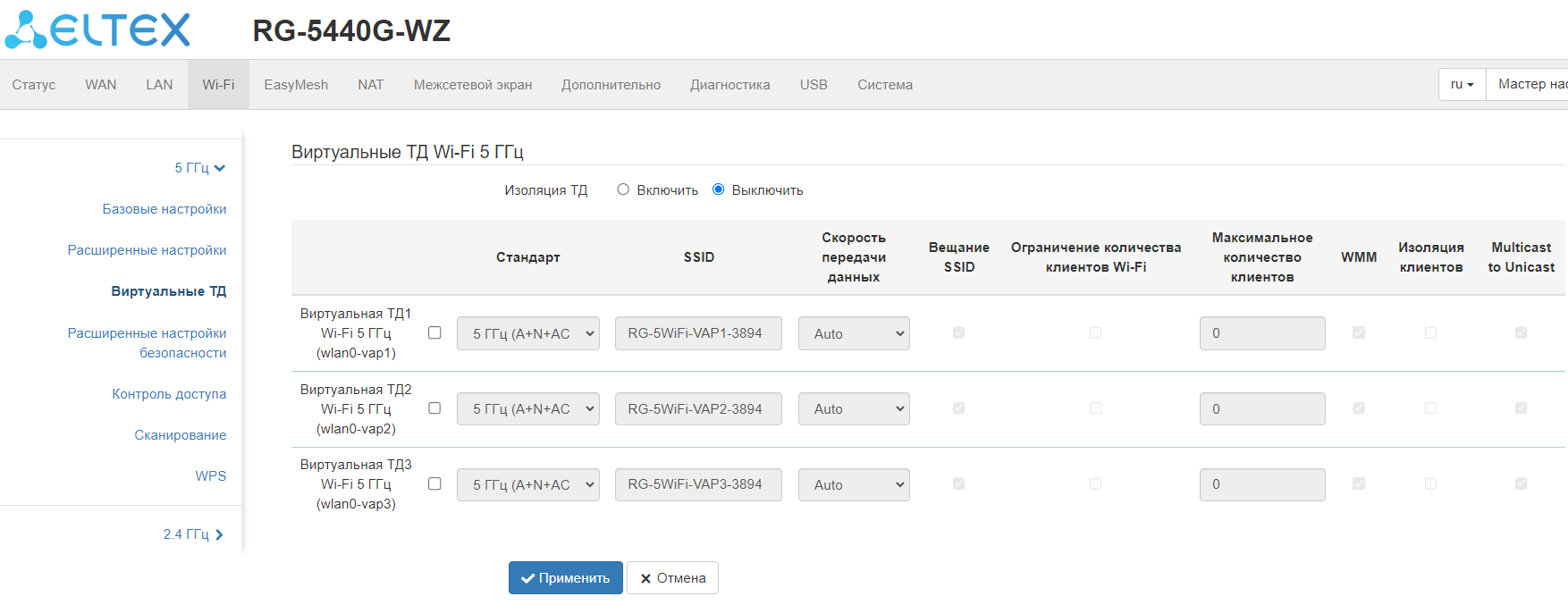поддержкаMultiWAN (мультисервисная модель: раздельная настройка сетевых параметров для каждого сервиса: Internet, TR-069, IPTV);