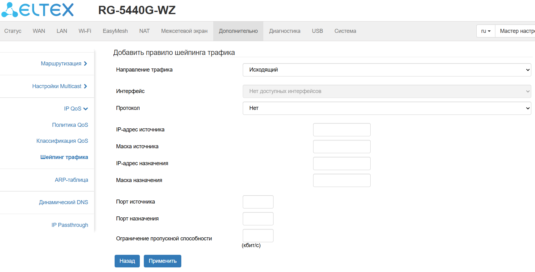 Syslog-сервер — адрес удалённого syslog-сервера для выгрузки системных сообщений.