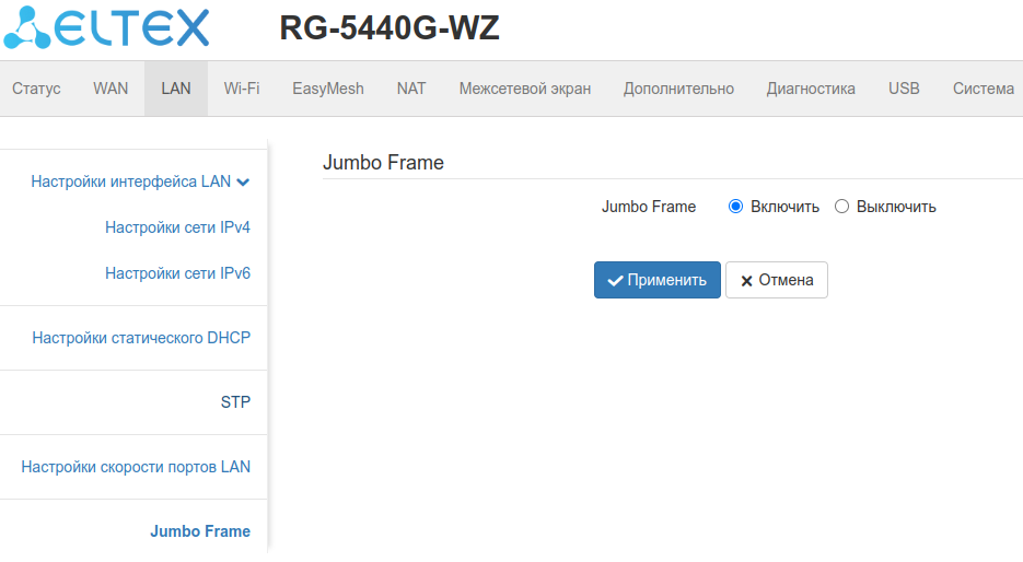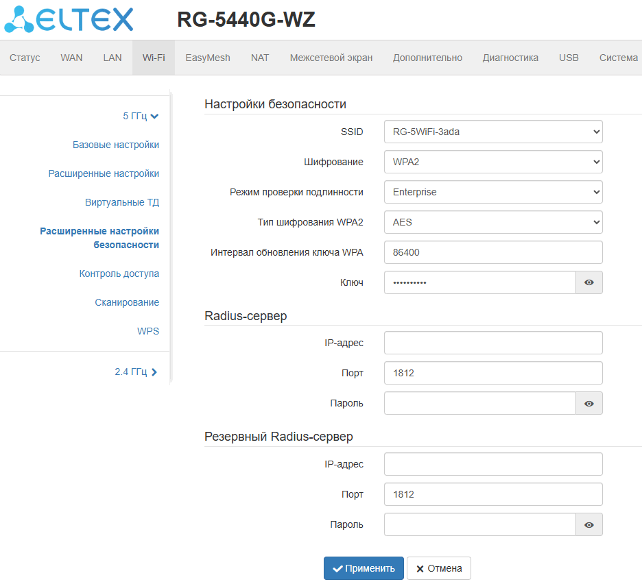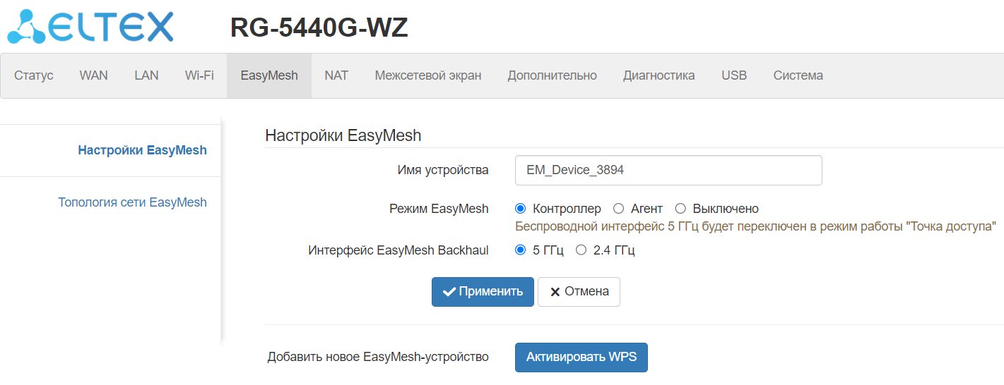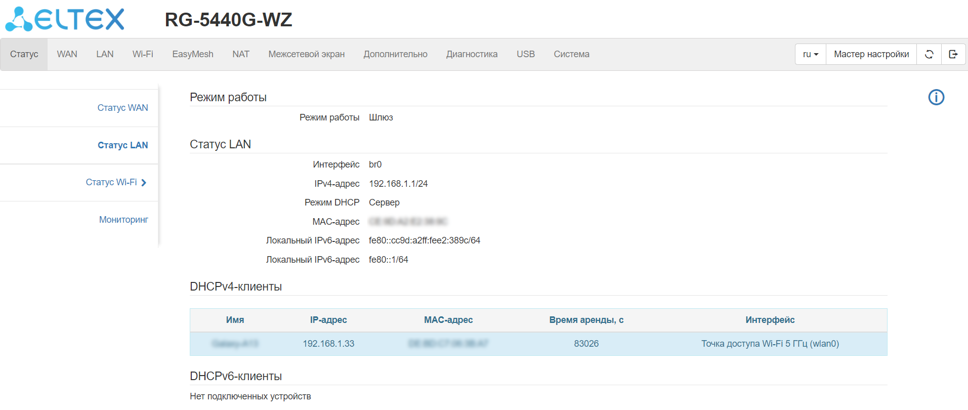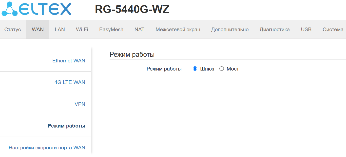 RG-5440G-WZ имеет встроенный хаб умного дома, совместимый с Z-Wave устройствами производства Eltex, для взаимодействия с датчиками и устройствами системы «Умный дом» и управления ими через платформу Eltex Smart Cloud (Eltex SC).