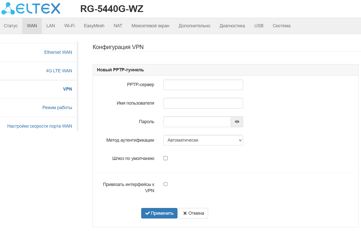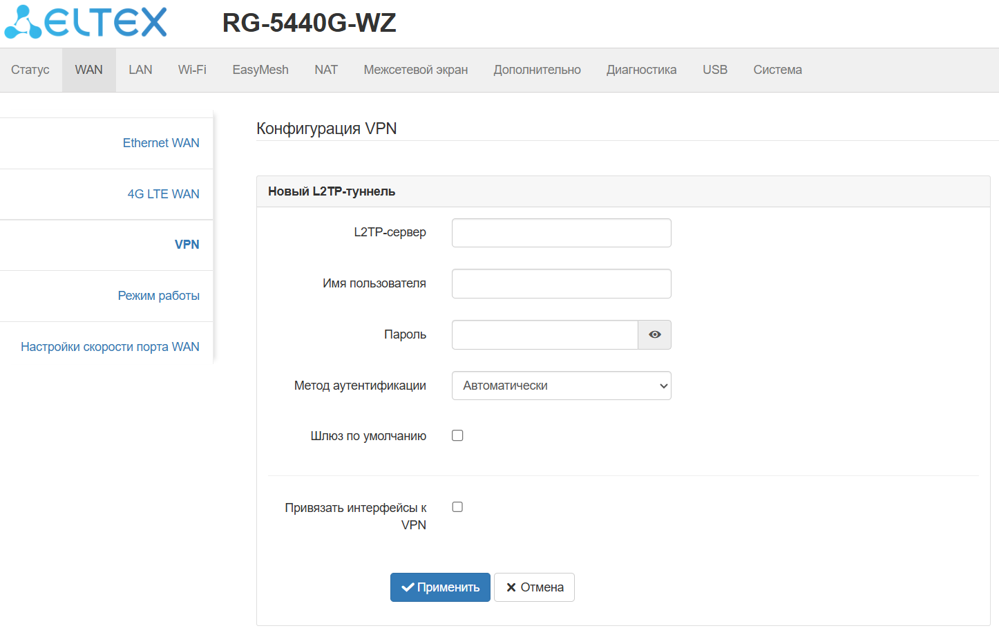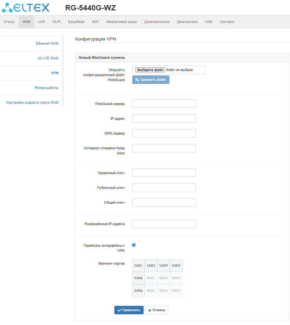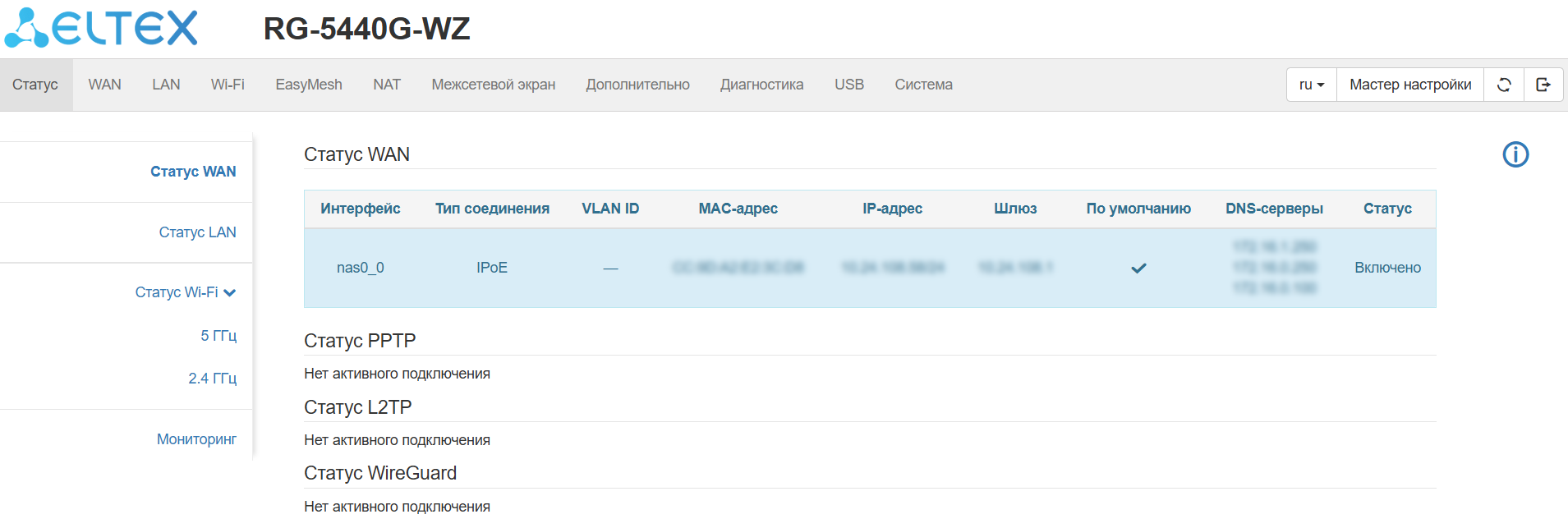 WAN: 1 порт Ethernet RJ-45 10/100/1000BASE-T;