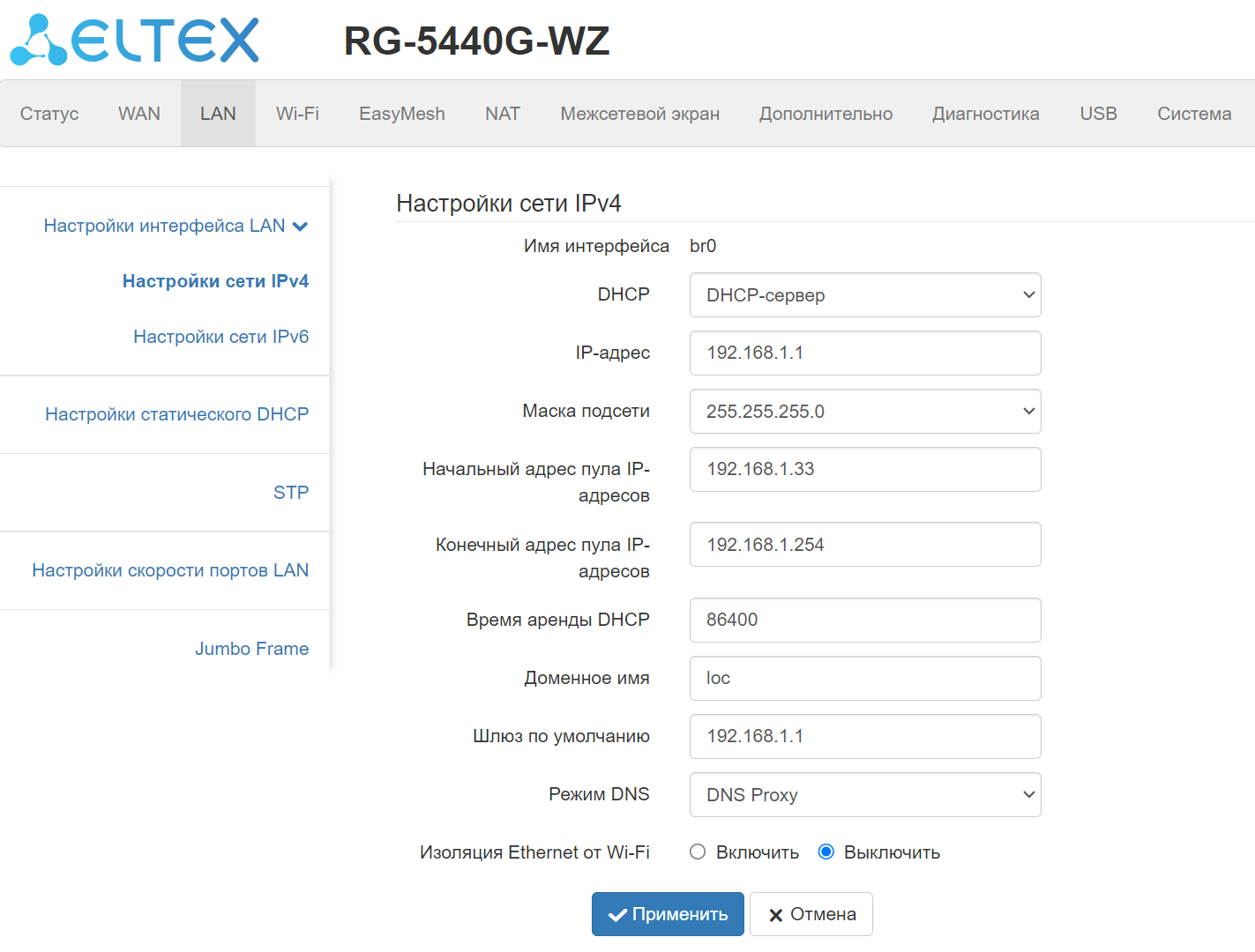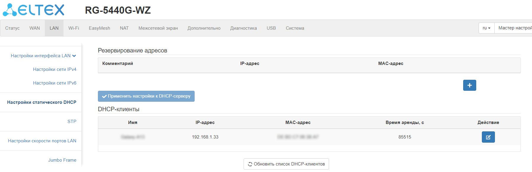 поддержка статического адреса и DHCP (DHCP-клиент на стороне WAN, DHCP-сервер на стороне LAN);