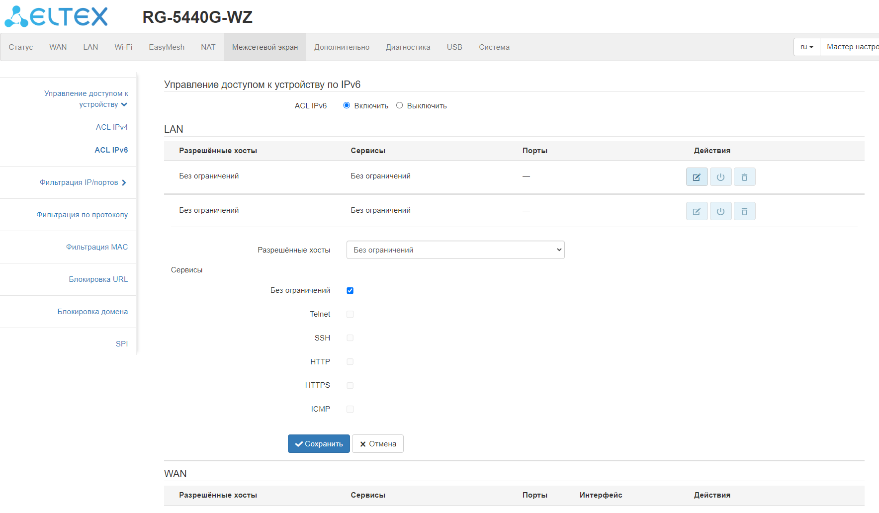 Включить CWMP WAN ACL — включить управление доступом к CWMP через WAN.