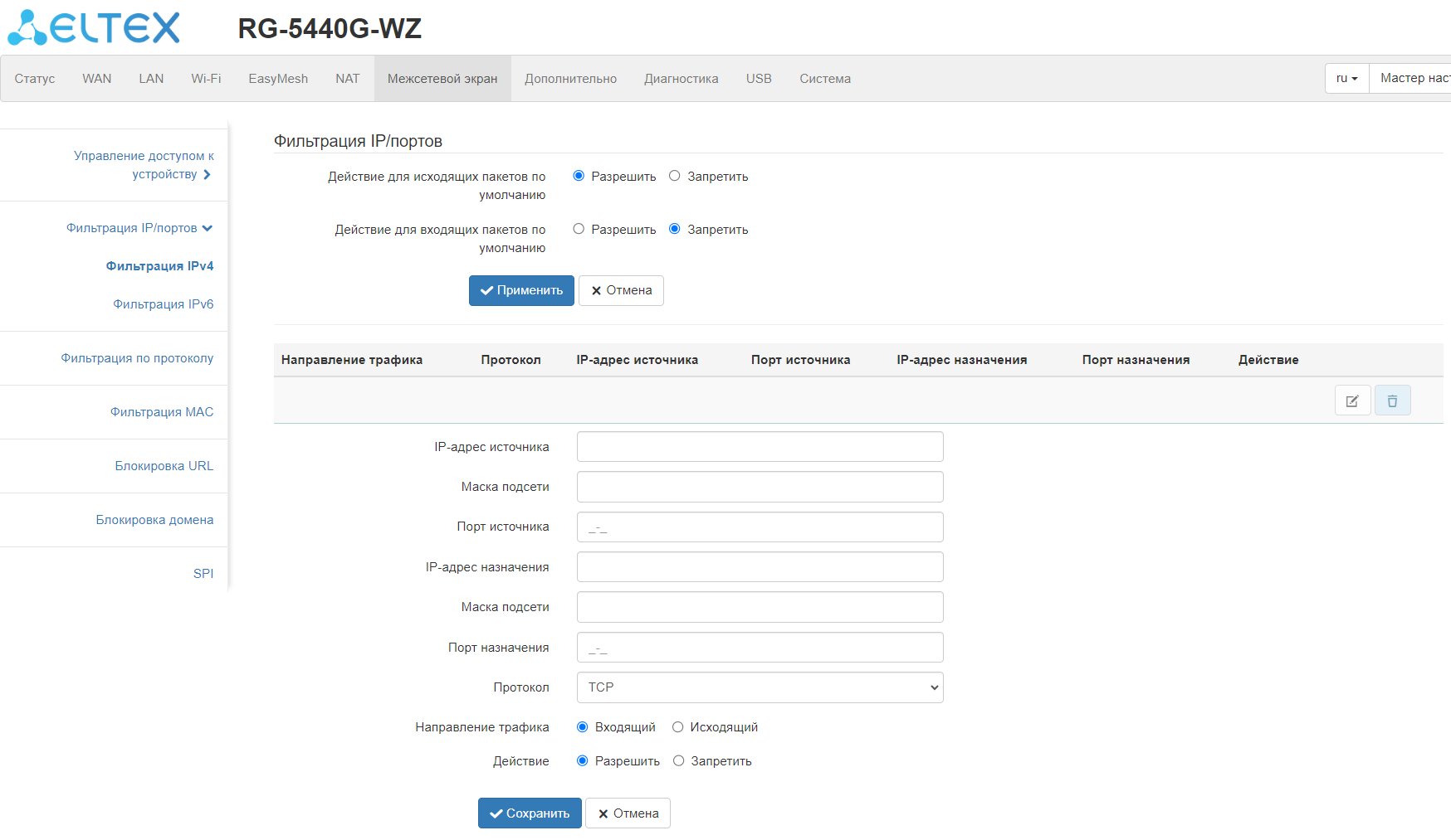 поддержка ALG (FTP, TFTP, H323, SIP, PPTP);