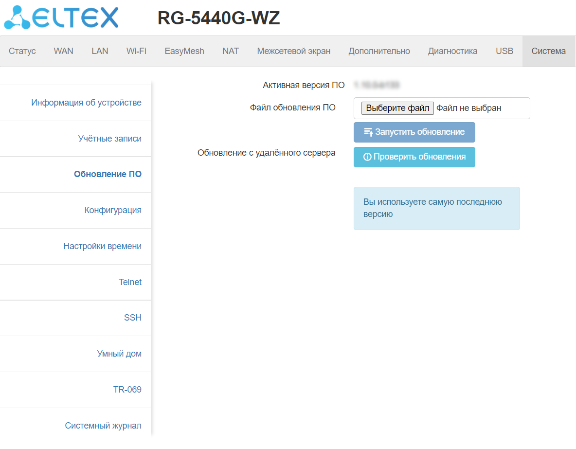 Активная версия ПО — версия программного обеспечения, установленного на устройстве.