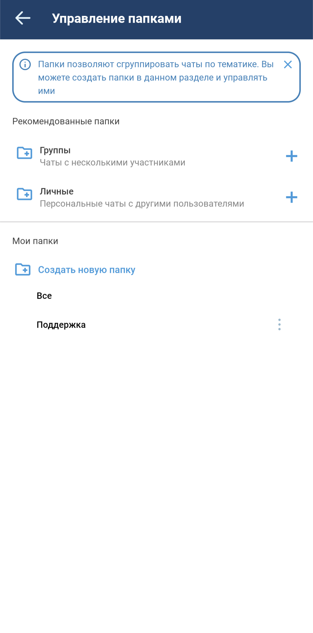 - кнопка Добавить тему (только для суперчата, см. раздел «Суперчаты»);