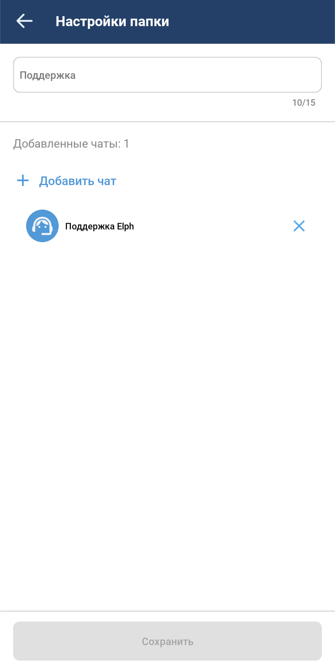 Для быстрой связи с администратором существует чат «Поддержка Elph». Этот чат находится среди всех остальных чатов в общем списке чатов, а также в выпадающем меню (см. раздел «Интерфейс главного экрана чатов»).