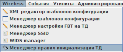 "Wireless" → "Менеджер правил инициализации" → "Правила" → "Добавить"