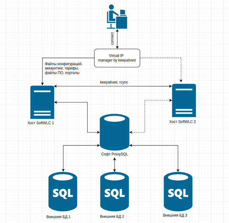 Принципиальная схема  резервирования SoftWLC при помощи ProxySQL + Galera Cluster