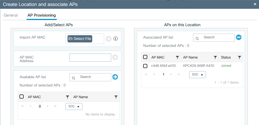 • Перейти в раздел "Configuration" → "Tags & Profiles" → "Tags" → "AP" → "Location"