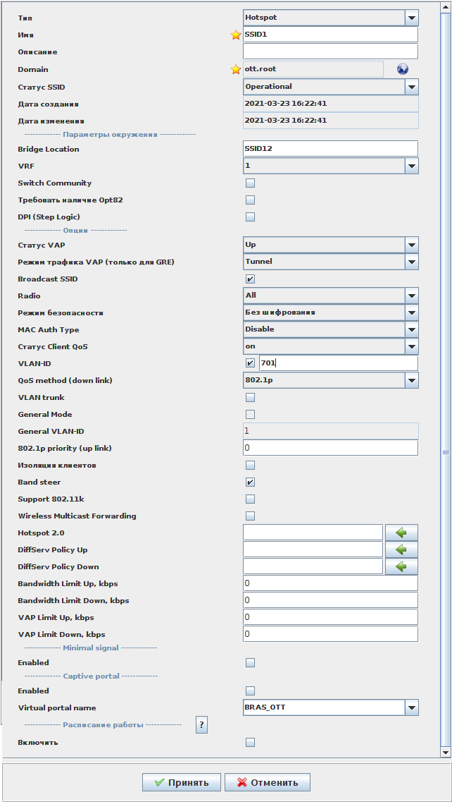 Наименование - "SSID1";