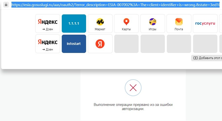 https://esia.gosuslugi.ru/aas/oauth2/?error_description=ESIA-007002%3A+The+client+identifier+is+wrong.&state=3ed1062f-6ebf-4bf7-9c0a-974472e73c76&error=invalid_request