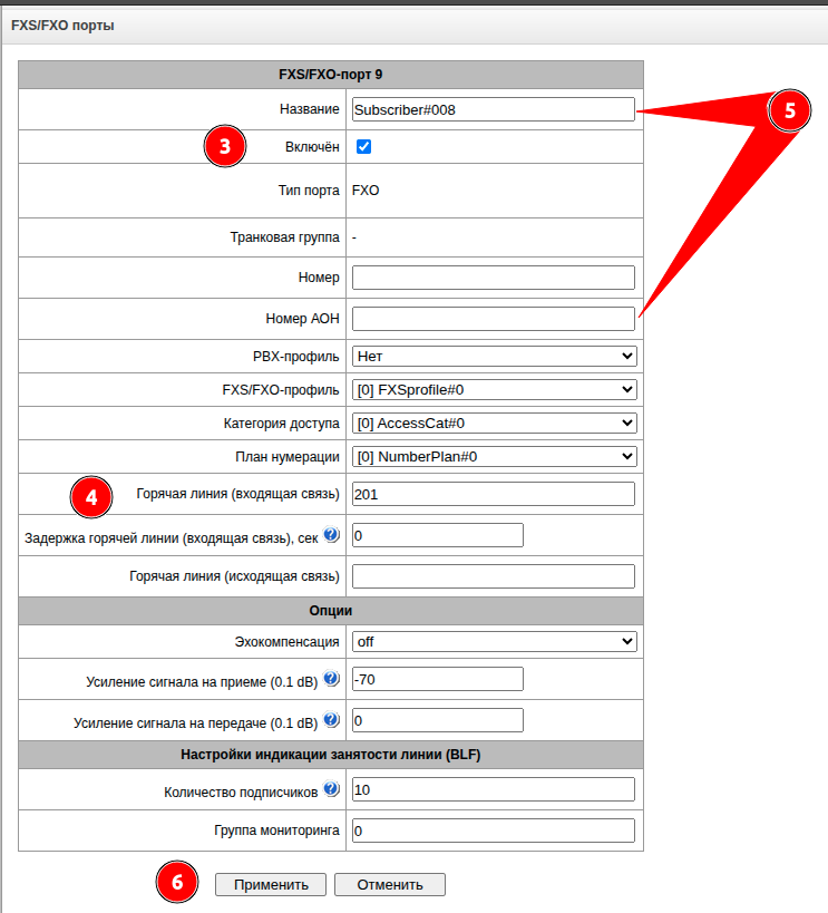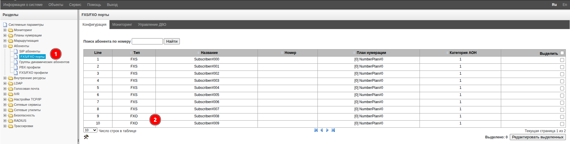 1. Перейдите в меню «Абоненты» → «FXS/FXO порты».