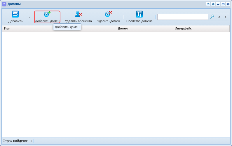 Для создания домена необходимо войти в приложение "Домены" ("Domain"). В открывшемся окне требуется создать домен, для этого: