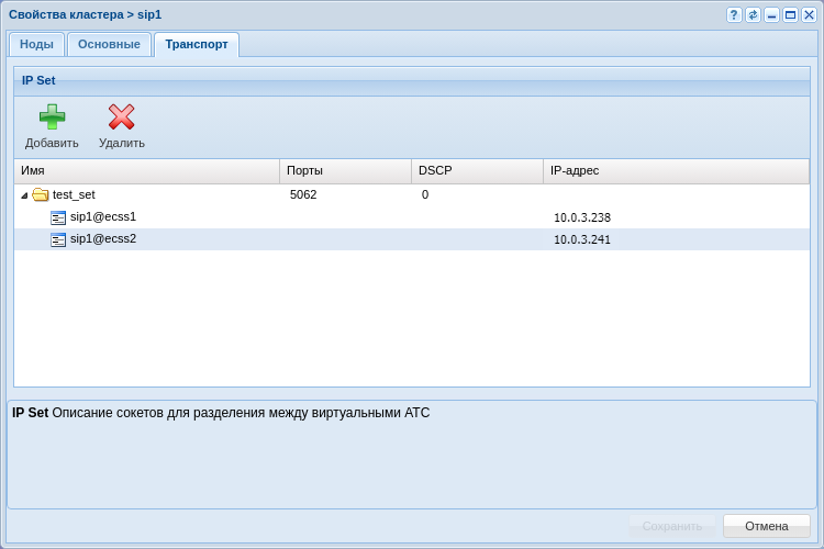 Создание IP-set/(sip-транспорта) и присвоение его к домену