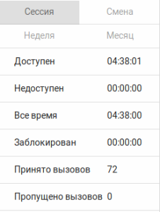 Блок отображает статистику текущей сессии, статистику за смену, неделю, месяц.