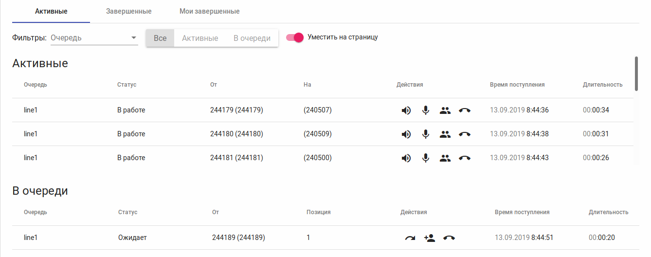 В данном разделе отображаются текущие активные вызовы операторов и супервизоров, находящихся в одной группе, а также вызовы находящиеся в очереди.