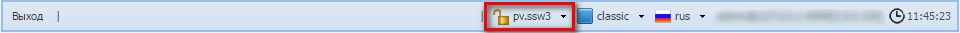 Слева на панели инструментов расположена кнопка "Выход" ("Logout"), которая служит для выхода из системы или смены пользователя: