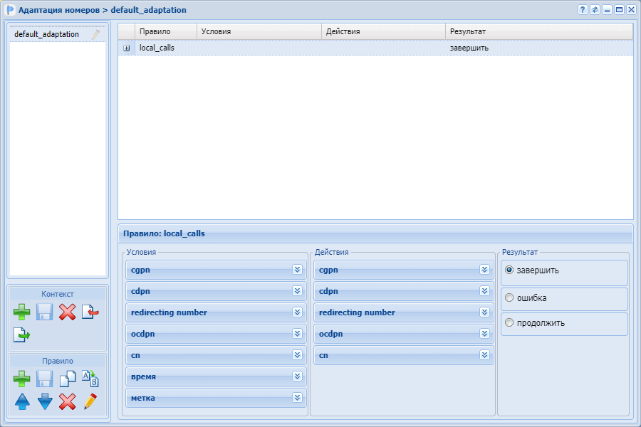 - Контекст адаптации – логическая совокупность правил адаптации, уникальная в рамках домена, по которой происходит адаптация номера;