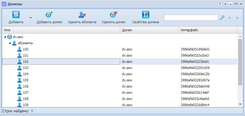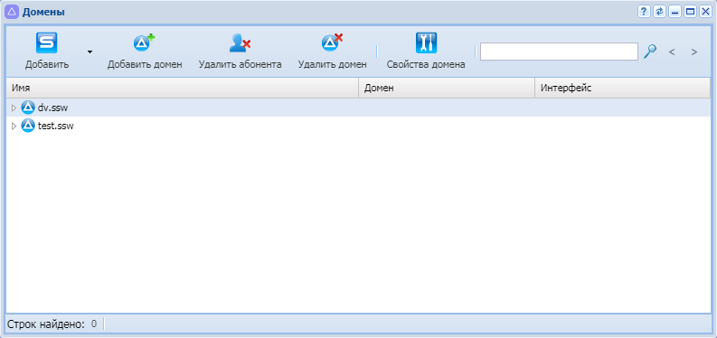 Для управления составом виртуальных АТС, абонентами и их настройками служит приложение "Домены" ("Domains").