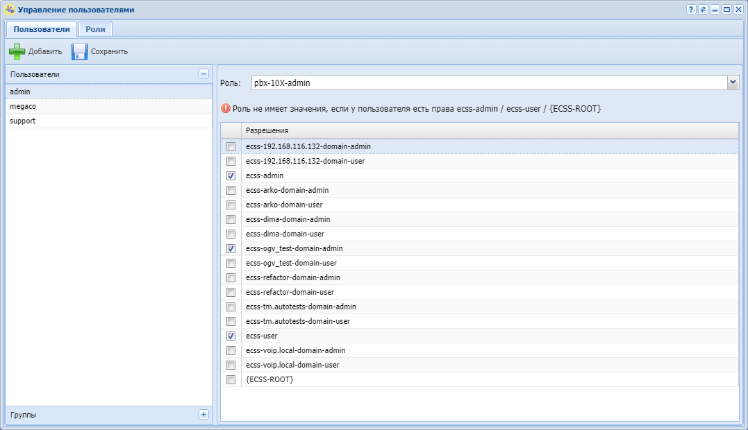 Редактирование ролей