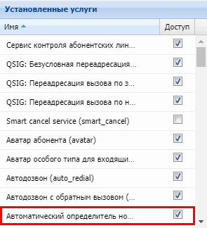 - Установленные услуги - список установленных на виртуальной АТС услуг;