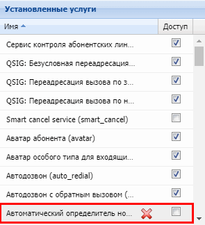 Администратор системы может открыть или закрыть доступ администратору виртуальной АТС для управления услугой.