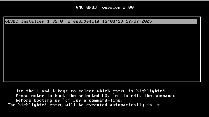 Шаг 1. В меню GRUB выберите установщик vESBC и нажмите "Enter":