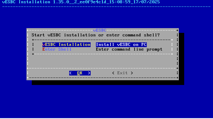 Шаг 2. Выберите пункт "vESBC Installation" для установки vESBC и нажмите "Enter":